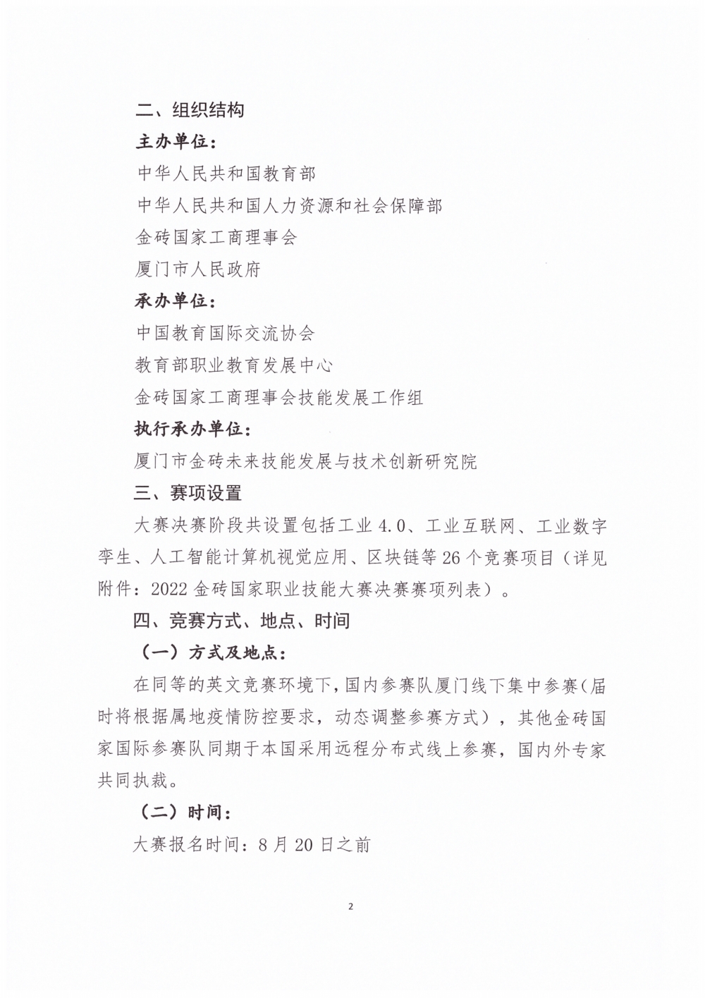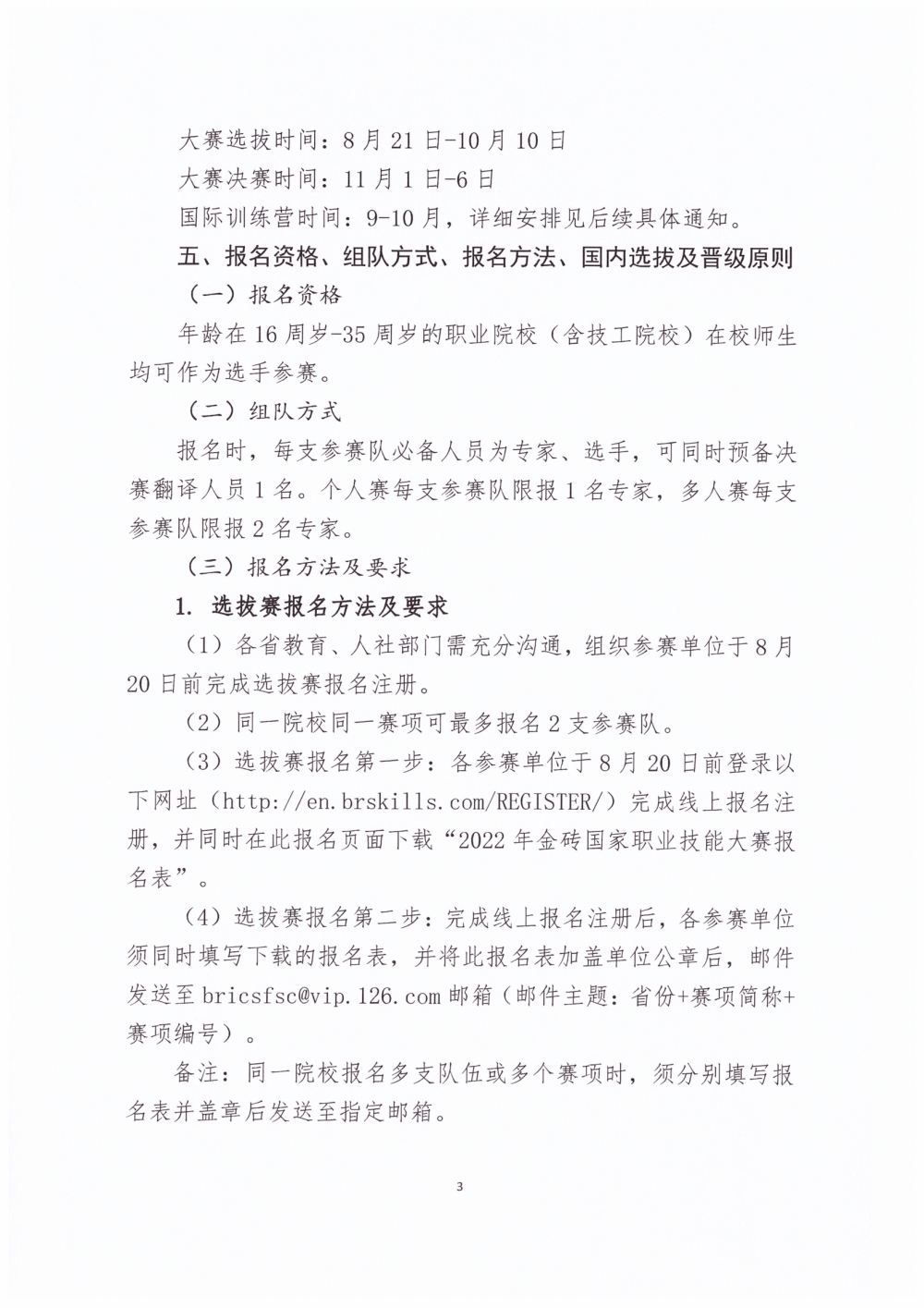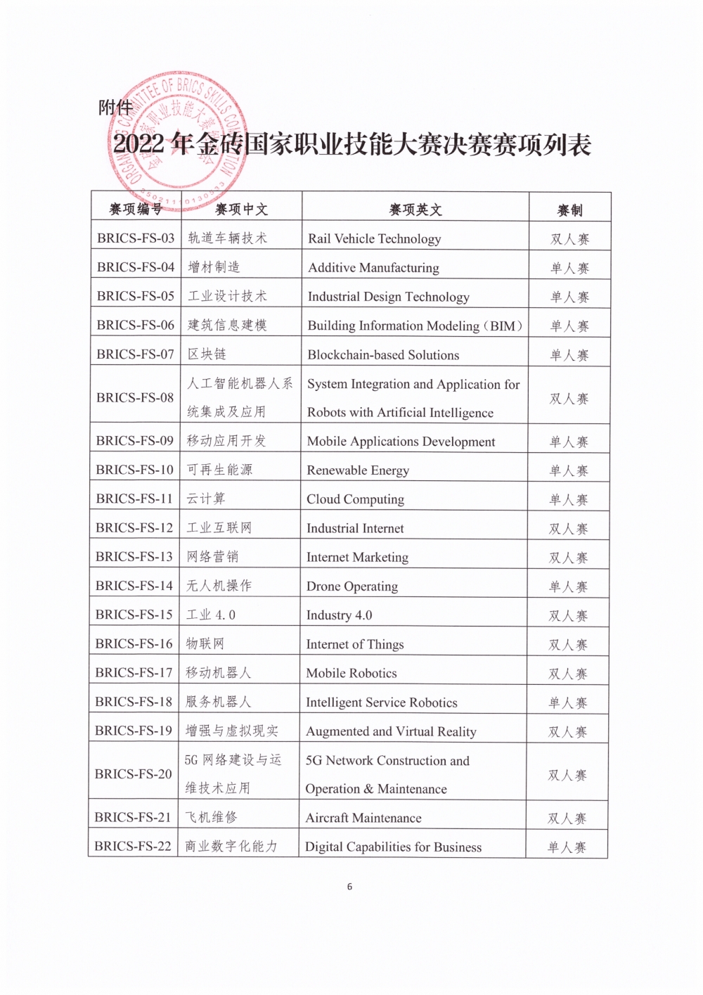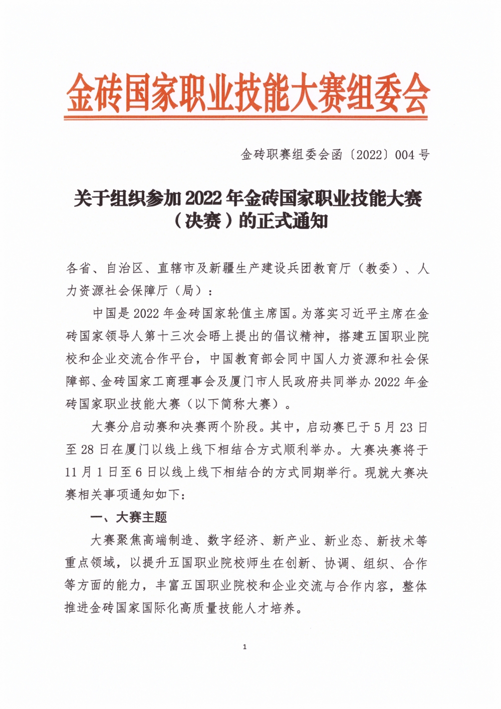 关于组织参加2022年金砖国家职业技能大赛(决赛)的正式通知